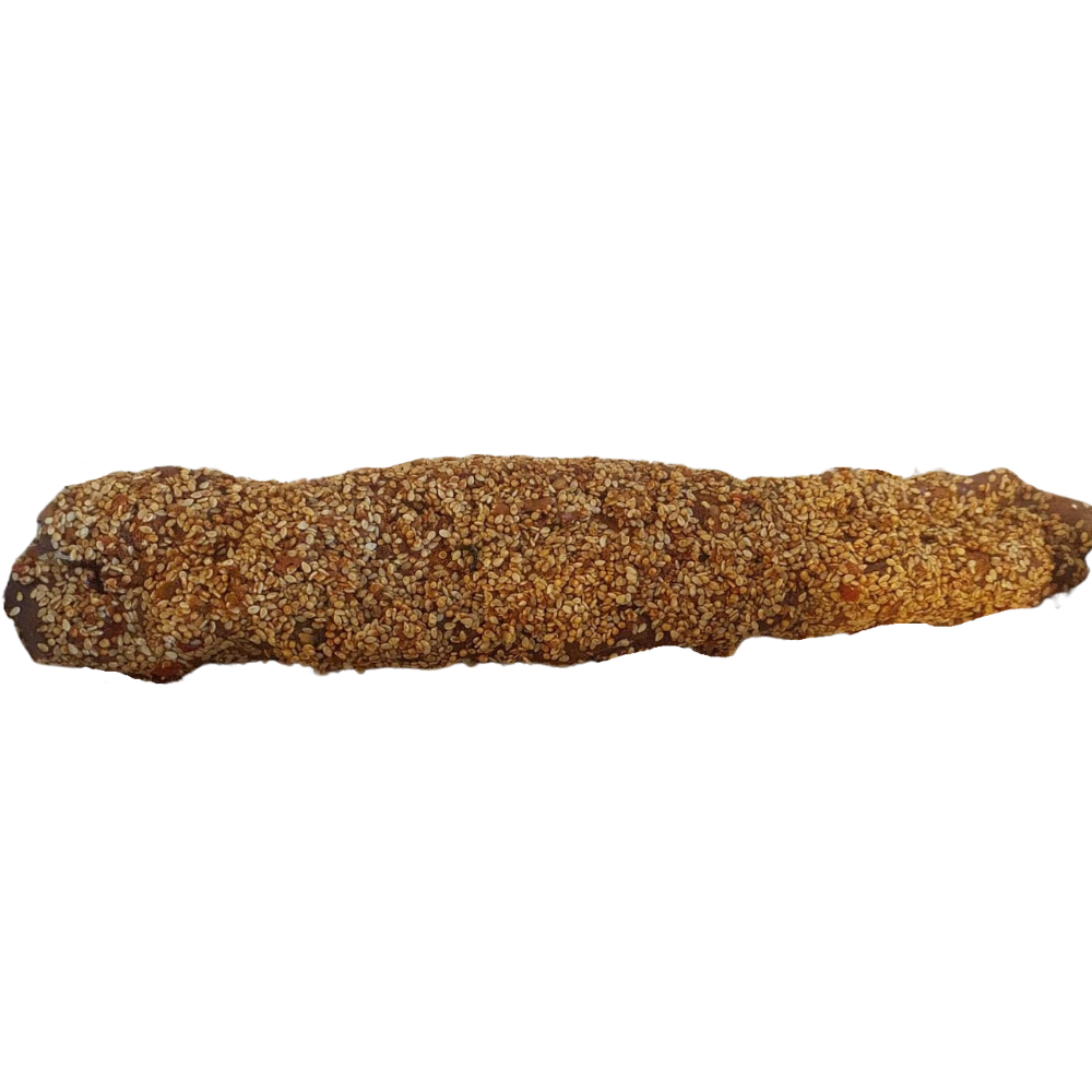 Carnea este adesea marinata inainte de gatire, ceea ce ii confera o aroma intensa, iar susanul adauga o textura placuta.